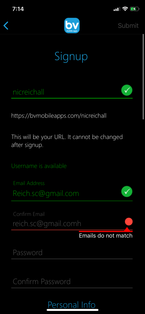 Previous ImageNext Image BV Mobile Apps Sign-up Page iOS Custom Textfields with content verification complete with error label animations
